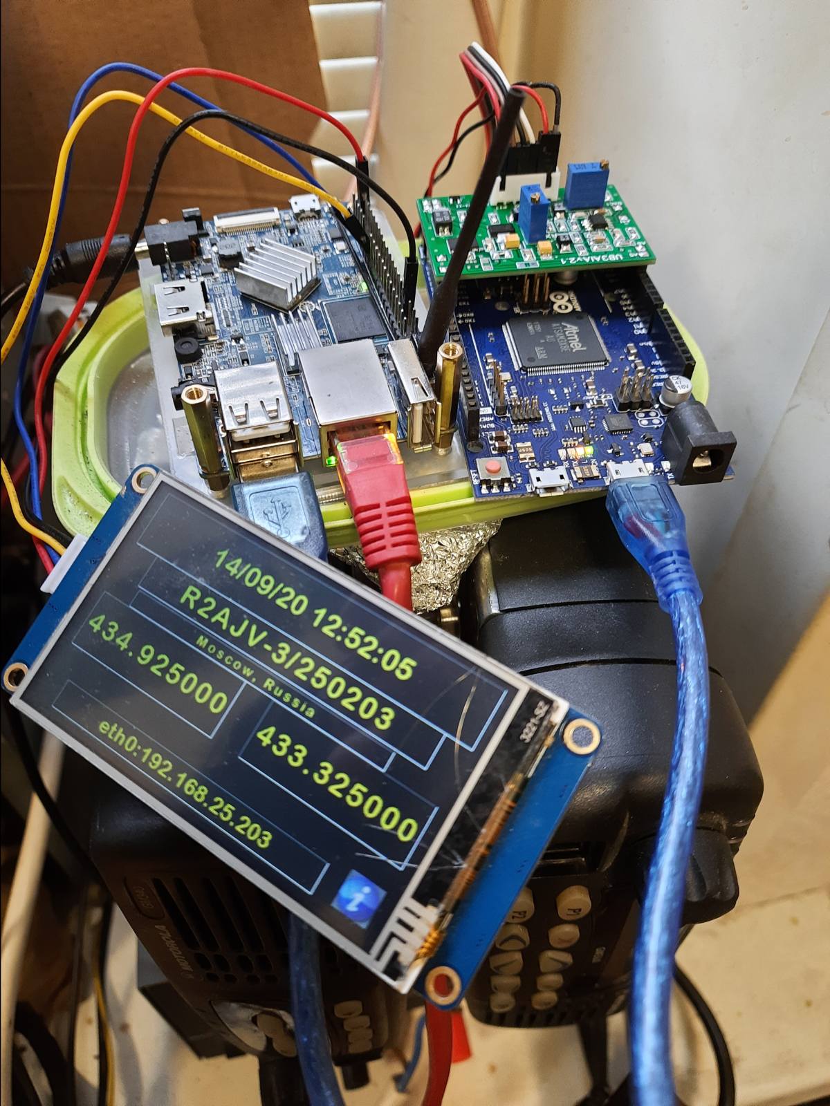 На узле R2AJV-3 в модуле D на плате MMDVM_pog пропал ТХ. Вернулся к старой проверенной связке шилд UB3AIA и arduino, которая теперь подерживает появившийся в ммдвм аналоговый FM режим работы.R2AJV wrote: ↑31 Oct 2019, 13:05 Узел R2AJV-3 в модуле D переведен в дуплекс на работу в режиме мультимод DMR-DSTAR-YSF 24/7 в конфигурации OrangePi PC Plus-MMDVM_pog- Motorola GM340/GM360