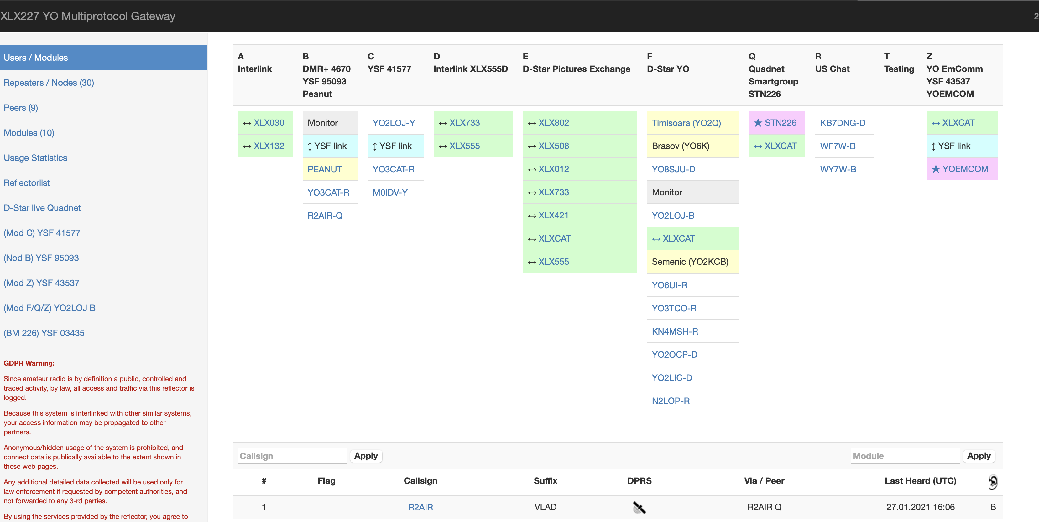 1. Выбираем любой рефлектор, работающий на Dashboard 2.4.0 и старше. Все дело в том, что трансивер работает в третьем поколении (G3) стандарта D-star со всеми плюшками типа фотографий, групповых вызовов, расширенного dprs и пр. На сегодня только такое ПО понимает режимы Т и АР, реализованные в новых трансиверах ICOM. Кроме того они должны быть включены админом.